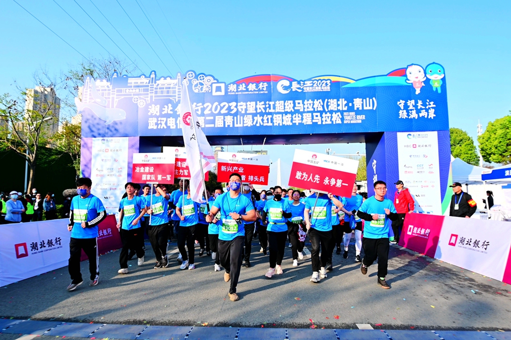 4月2日,2023湖北·超级马拉松暨第二届青山绿水红钢城半程马拉松在中国一冶承建的青山江滩正式鸣枪开跑。中国一冶作为企事业单位代表,120余名职工组成跑团,和万名海内外跑友共同体验马拉松的独特魅力。